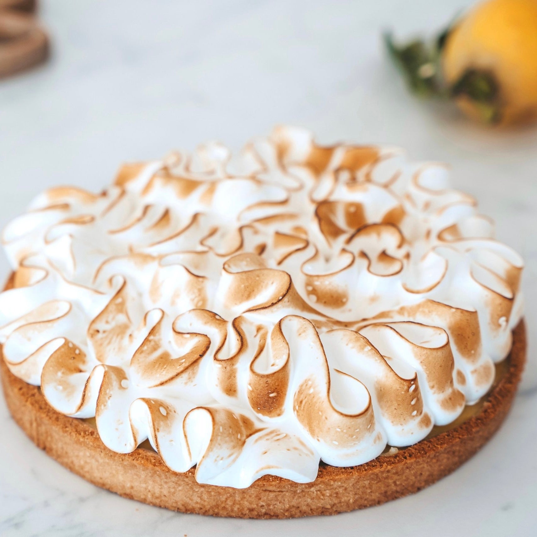 A delicate tarte au citron meringuée — tangy lemon cream in a crisp crust, topped with toasted meringue for a bright, refreshing finish.